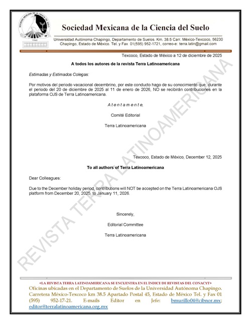 - RosaMaria Lopez Atilano, Índice , REVISTA TERRA LATINOAMERICANA: Vol. 33 No. 4 (2015)